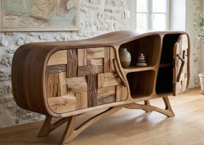 Un artisan qui n’explore pas s’appauvrit. Nos créations originales sont notre espace de liberté : aucun cahier des charges, aucune contrainte d’espace à respecter. On part d’un bois, d’une idée, d’un style qu’on veut explorer.